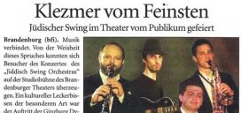 Musik verbindet. Von der Weisheit dieses Spruches konnten sich Besucher des Konzertes des “Jiddisch Swing Orchestras” auf der Studiobühne des Brandenburger Theaters überzeugen. Ein kultureller Leckerbissen der